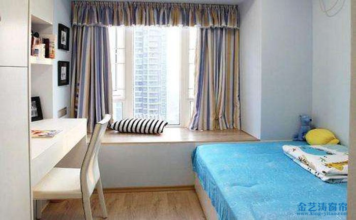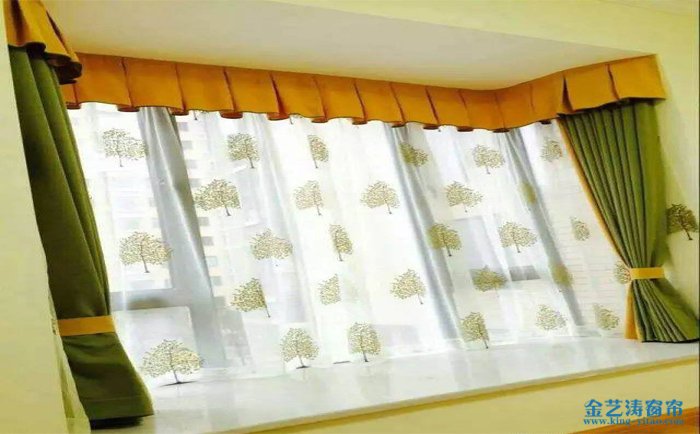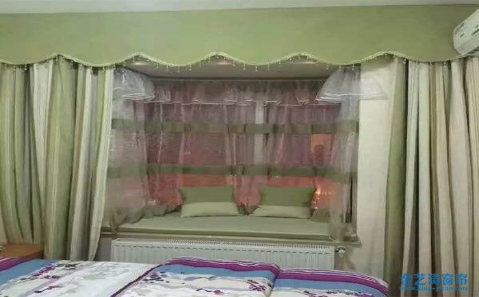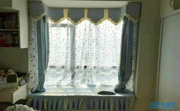 1、飄窗的窗簾,一般情況下都是窗簾做在飄窗里面,布簾做在飄窗外面雅口的地方。飄窗窗簾,在飄窗里面靠著窗戶玻璃繞一圈,有U字形的,也有L型的,高度同飄窗內(nèi)高。臥室的布簾一般做通墻落地的比較多,如果有暖氣片的,也可以做窗框大小,兩遍個延長30公分左右。另外,還有直接把布簾和配套的紗簾一起做在飄窗里面,這樣既省布料,又顯得臥室很大,不繁瑣。