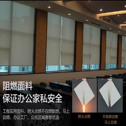 辦公室防火卷簾,以特制聚酯纖維為原材料精心織造的產(chǎn)品,所采用的聚酯纖維具有較好的比模量和耐沖擊性,重量更輕,更耐曲折。遇火卷縮、炭化、不溶滴,遇明火滯燃自熄,不延燒、無毒性,多次洗滌不失效的永久性阻燃產(chǎn)品,符合B1級標準(GB 17591-1998以上的陽光面料卷簾。