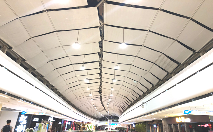 FSS電動天棚簾效果:使用時,面料平整張緊,裝飾效果簡潔明快。
