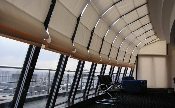 FSS電動天棚簾應(yīng)用場所:彎曲、傾斜或水平的中小型遮陽場所,如酒店、咖啡廳等玻璃屋頂。