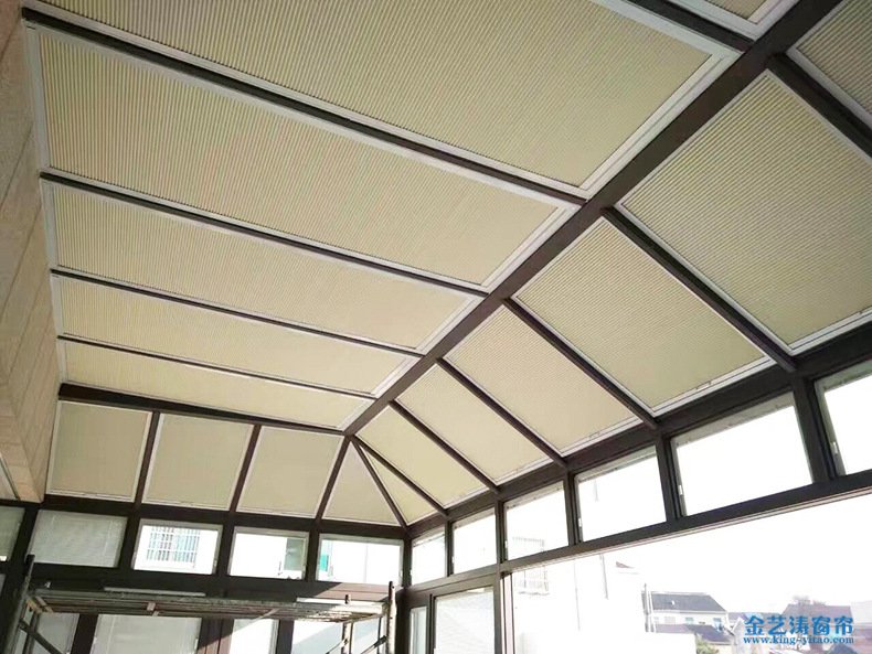 金藝濤陽光房遮陽頂簾蜂巢簾 全自動(dòng)玻璃房天窗斜屋頂蜂窩隔熱簾